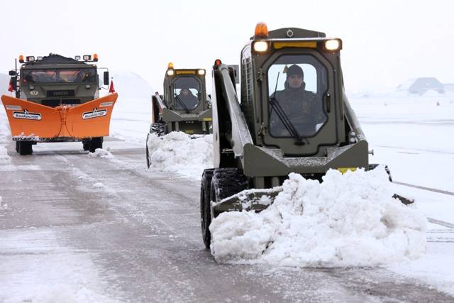 Está plenamente formada para operar ante grandes nevadas, teniendo una alta capacidad para limpiar infraestructuras, como ocurrió en 2009 y 2010 en el aeropuerto de Madrid/Barajas (foto UME).
