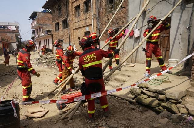 - Imágenes de la actuación durante el terremoto de Nepal, durante la cual la tuvo una brillante actuación (foto UME).