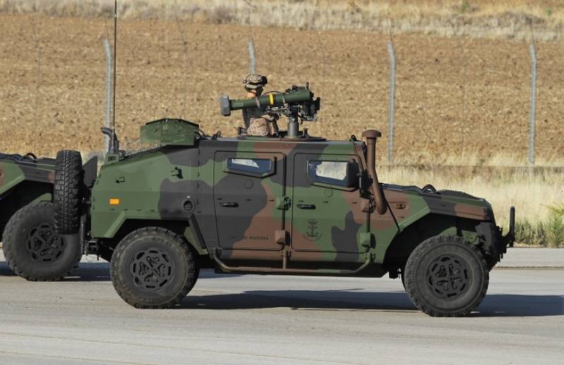 Uno de los VAMTAC destinados a portar y lanzar el mísil anticarro “Spike”, sito en el soporte que vemos en la parte derecha de la torre.