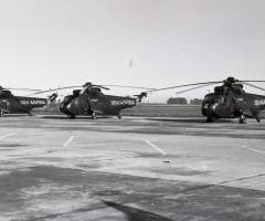 Una imagen, muy posiblemente de los años setenta del pasado siglo, se ven tres de los primeros SH-3D “Sea King” entregados al entonces Ministerio De Marina. (foto FLOAN)