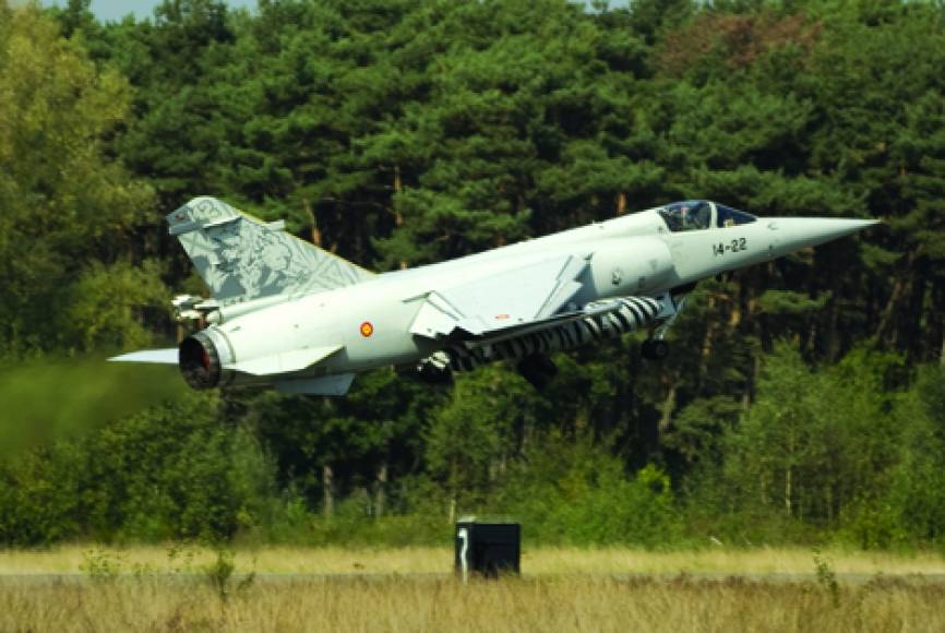 Regresando de una misión a la Base Aérea de Kleine Brogel, el "Mirage F1M" C.14-38 permanece activo en Albacete. (Patrick Roegies)