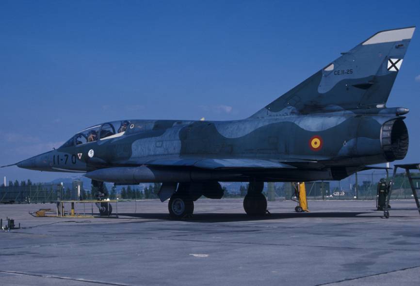 Además de los "Mirage F1", el Ejército del Aire usó su predecesor, el “Mirage III”. Aquí vemos un ejemplar de la versión de entrenamiento IIIBE de éste, el CE.11-25/11-70 del Ala 11. (Patrick Roegies)