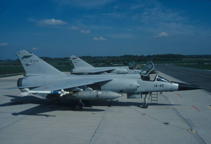 “Mirage F1” adicionales se compraron a la Fuerza Aérea francesa, como el C.14-58 del 462 Escuadrón, que mantiene su camuflaje original, que también fue modernizado a F1M, aunque se perdió en accidente el 10 de septiembre de 2009. (Patrick Roegies)