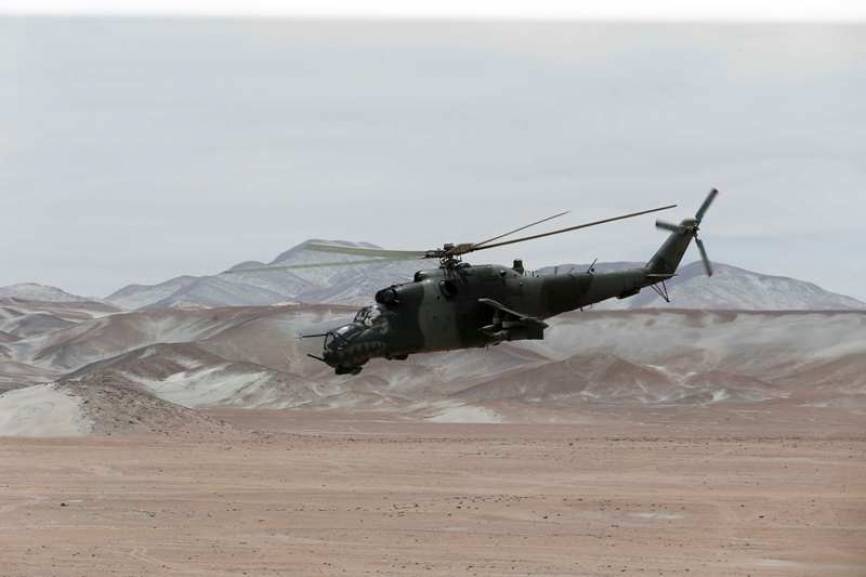 Helicóptero de Combate Mi-25 Hind D dando cobertura a baja altura.(Ministerio de Defensa del Perú)