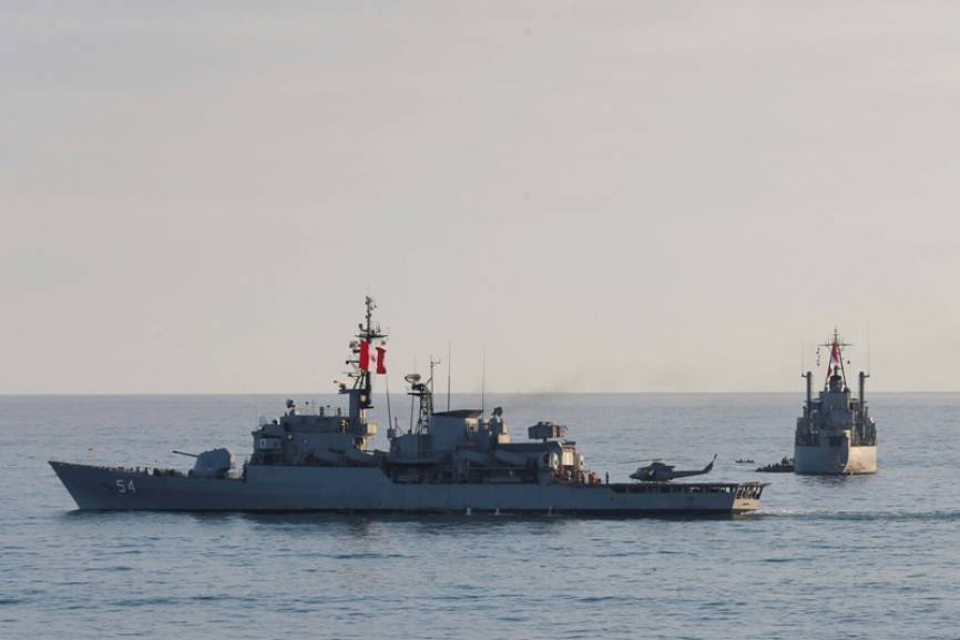 La Fragata BAP Mariátegui (FM-54) y el Buque de Asalto Anfibio BAP Eten (DT-144).(Ministerio de Defensa del Perú)