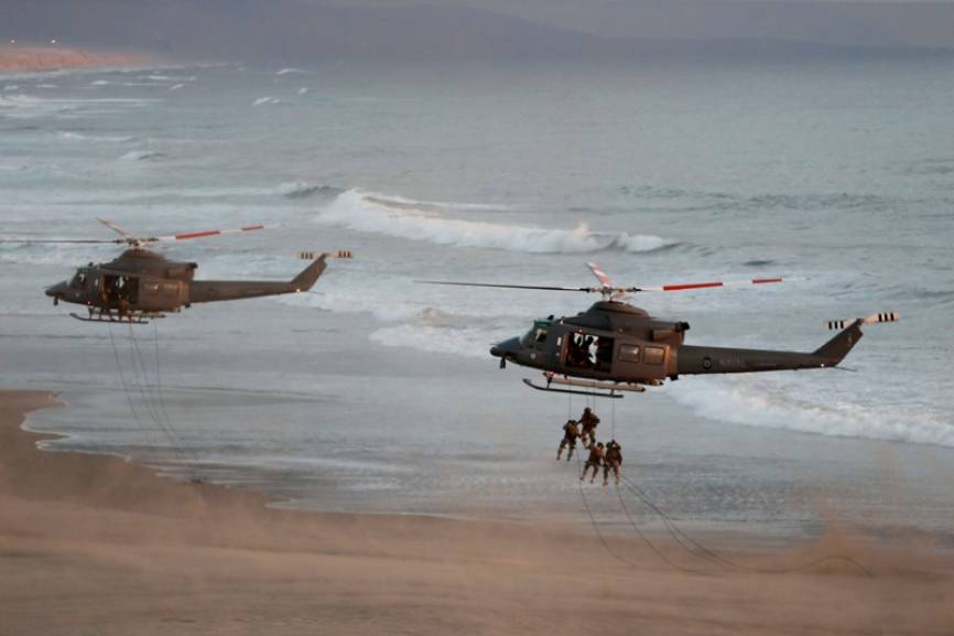 Efectivos del Batallón de Comandos descendiendo de Helicópteros AB-412SP.(Ministerio de Defensa del Perú)