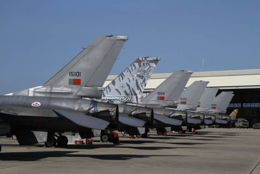Línea de F-16AM en la Base Aérea de Beja, modelo que equipa 2 escuadrones con sede en Monte Real. (Julio Maiz, Copyright defensa.com)