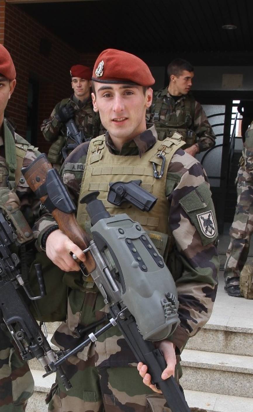 La ametralladora Minimi, que porta este paracaidista galo, está equipada de una JIM (Jumelle Infrarouge multifonctions/visor infrarrojo multifunciones) Sword T&D, que permite el tiro deportado (visual transferido a un ocular sujetado en el casco del solda