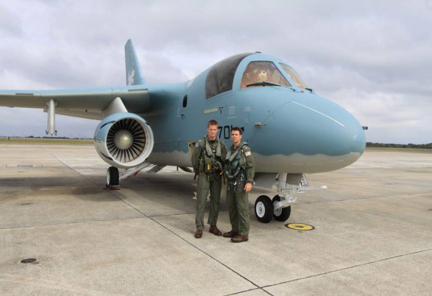 El teniente Christian Pedersen (izquierda) y el comandante John Rousseau posan ante su S-3B del VX-30 en la línea de vuelo de la NAS Jacksonville el 3 de noviembre pasado (foto Vic Pitts).