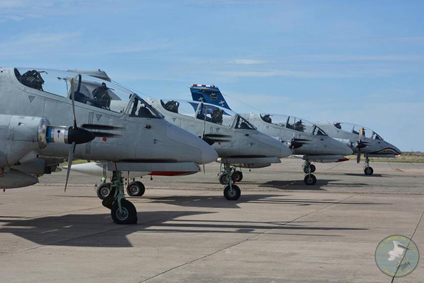 Aviones de ataque Pucara proximos a inicar sus vuelos (Luis Piñeiro, copyright defensa.com)