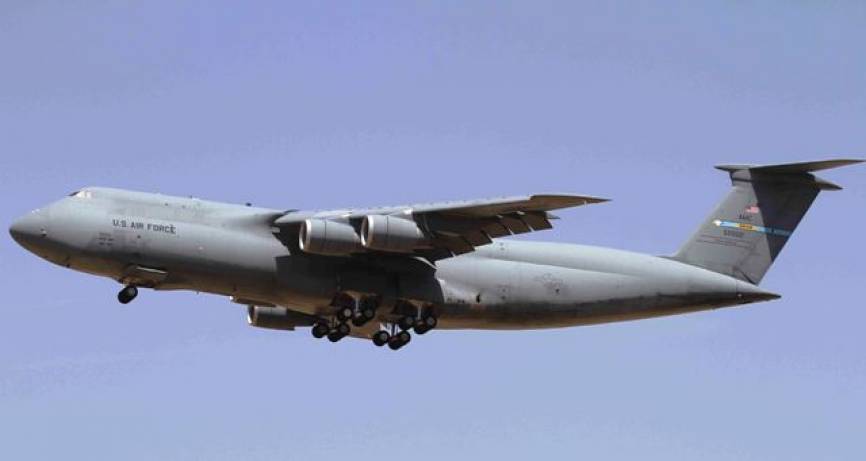 Otro de los transportes que desplegaron material asociado a la visita, fue este C-5M "Super Galaxia". Foto Julio Maíz.