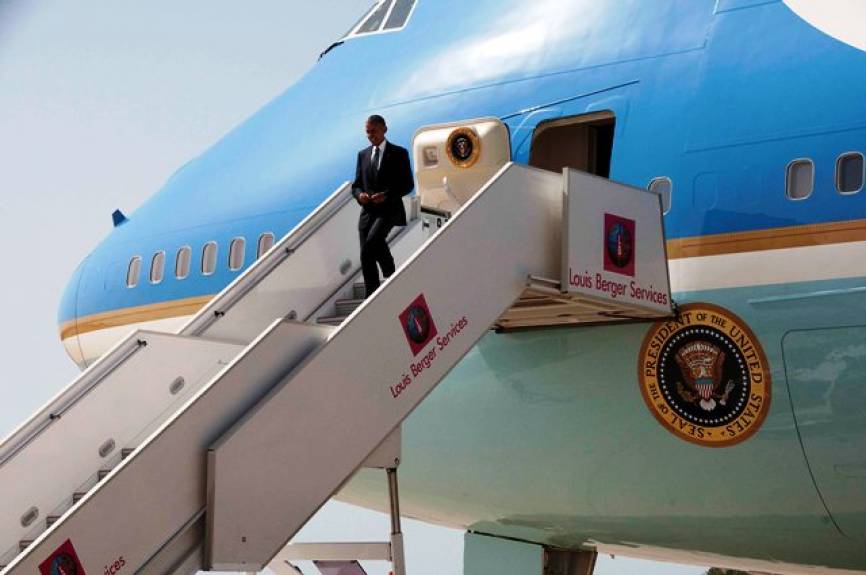 El presidente Obama en el “Air Force One” durante su visita a la gaditana base aeronaval de Rota. Foto US Navy.