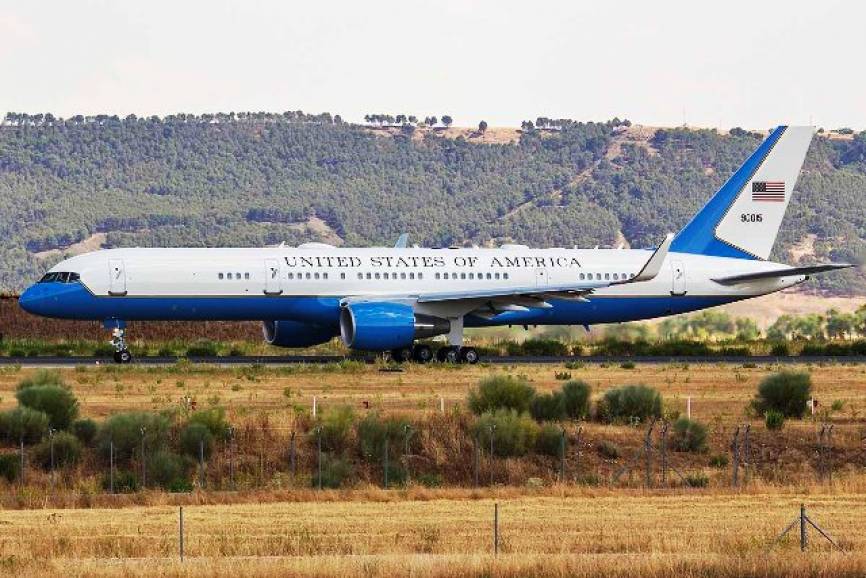 Al presidente Obama le acompañaba una amplia comitiva, parte de la cual le seguía en este C-32A de la USAF. Foto Rubén Galindo.