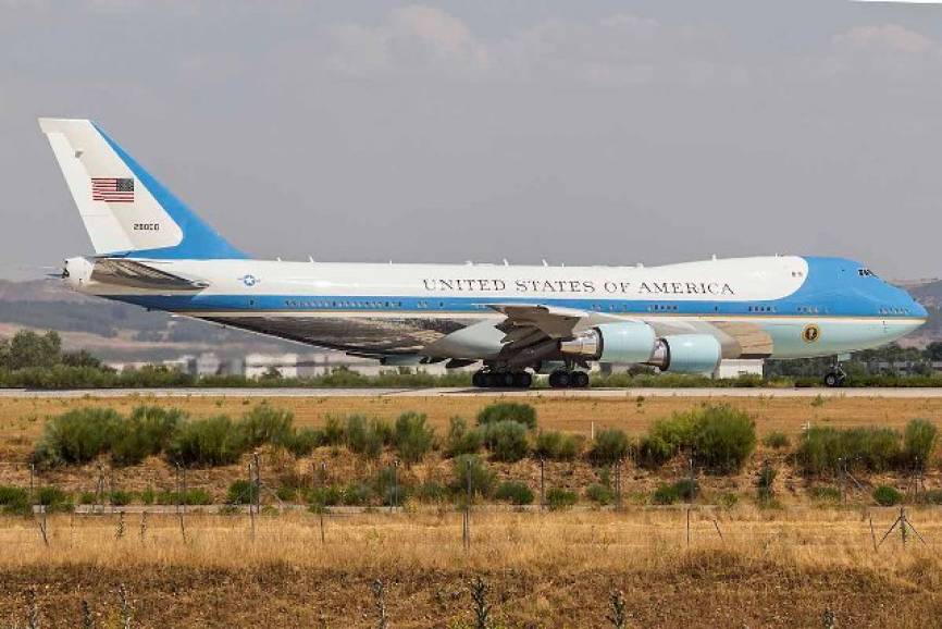 Uno de los Boeing VC-25A (un Boeing 747 muy transformado) más conocido como “Air Force One” rodando en la Base Aérea de Torrejón (Madrid) Foto Rubén Galindo.
