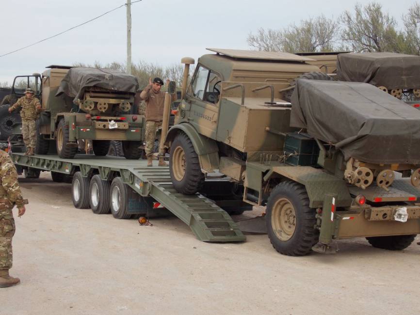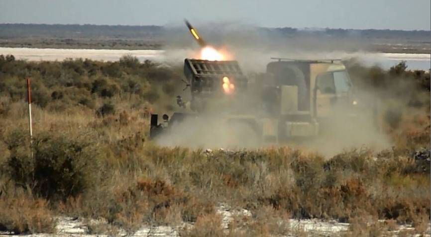 El MLRS Pampero, lanzo sus cohetes de 28 Kg de 105 MM de produccion nacional.