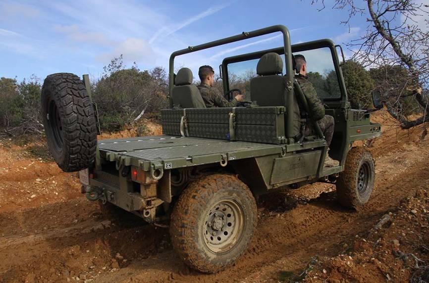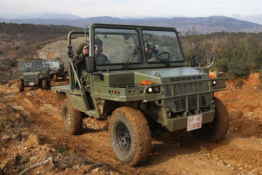 Para realizar el rodaje campo a través se quitaron las capotas de los VEA.(Julio Maíz /defensa.com)