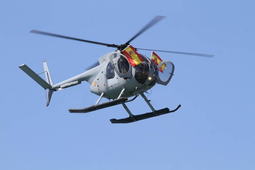 Desde uno de los Hughes-500 de la 6ª Escuadrilla se sacaron dos banderas de España.Julio Maíz Sanz / defensa.com