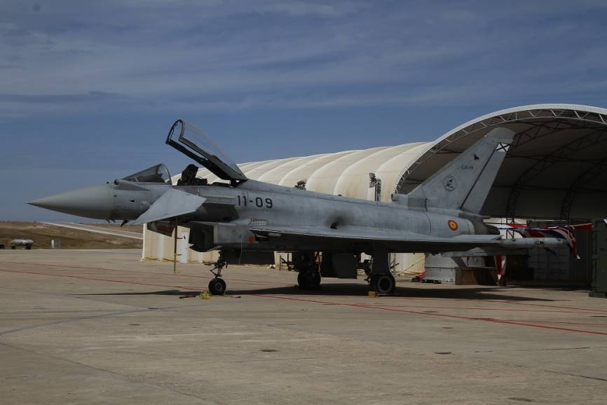 Un Eurofighter del Ejército del Aire se desplazó a Rota, donde se le hizo la foto, para participar en la exhibición del Centenario de la Aviación Naval.Julio Maíz Sanz / defensa.com