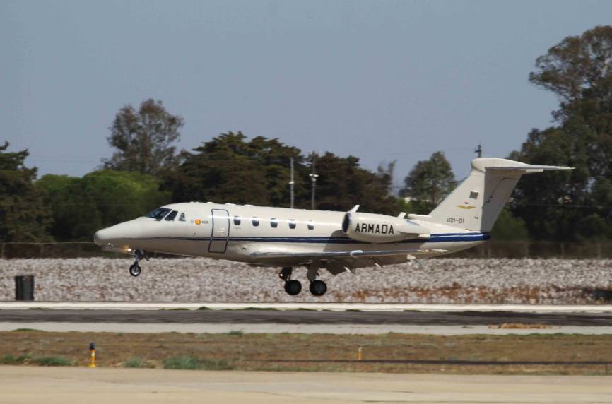 El único Cessna Citation VII de la 4ª Escuadrilla aterrizando en el aeródromo de Rota, tras participar en el desfile aéreo del 15 de septiembre.Julio Maíz Sanz / defensa.com