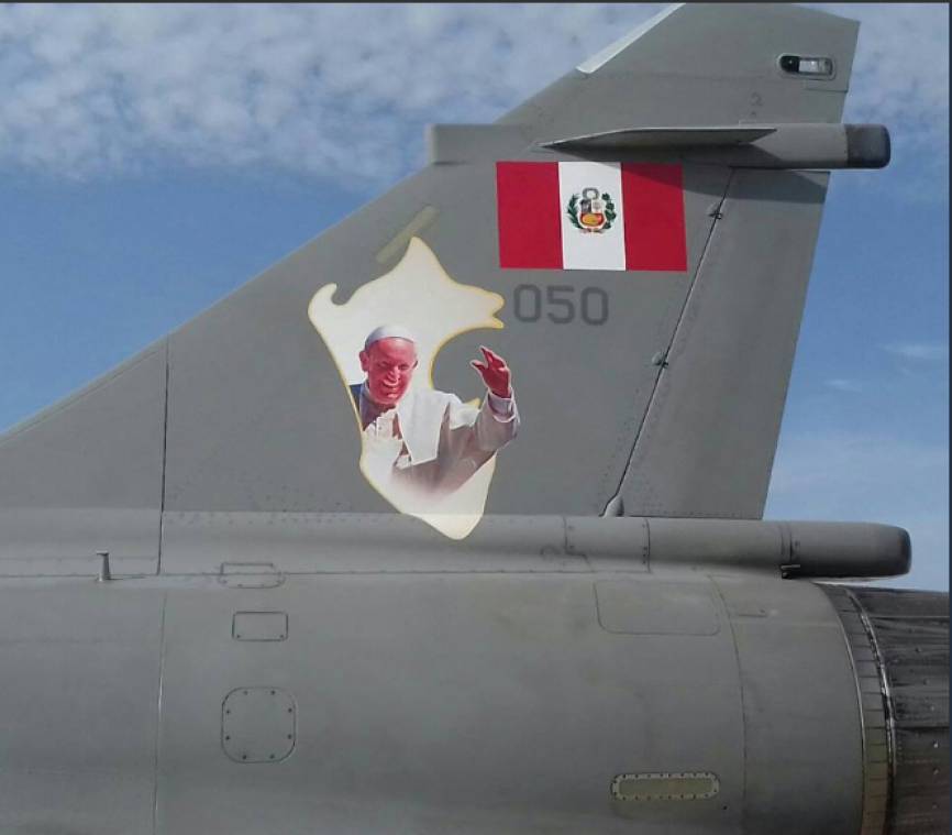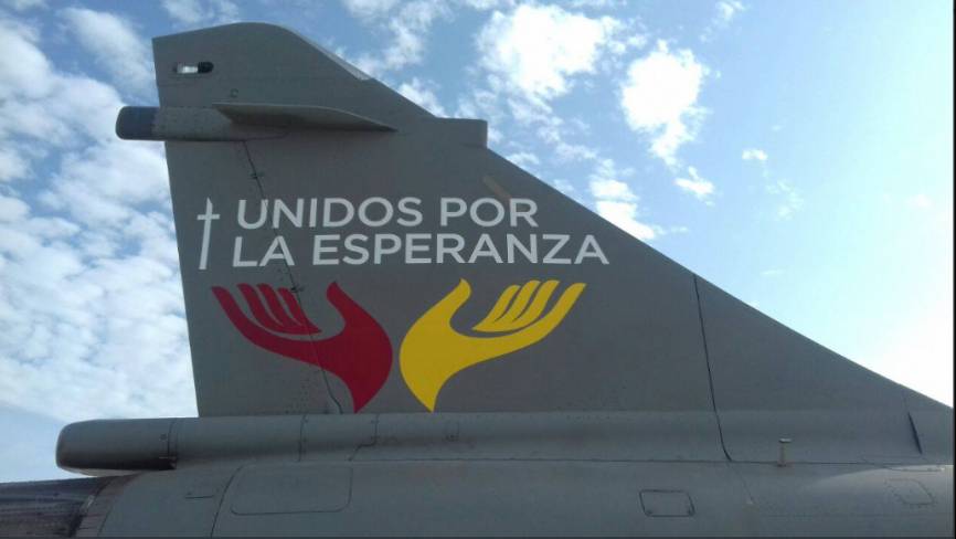Detalle del Logotipo Oficial de la visita del Papa Francisco en un Mirage 2000P.