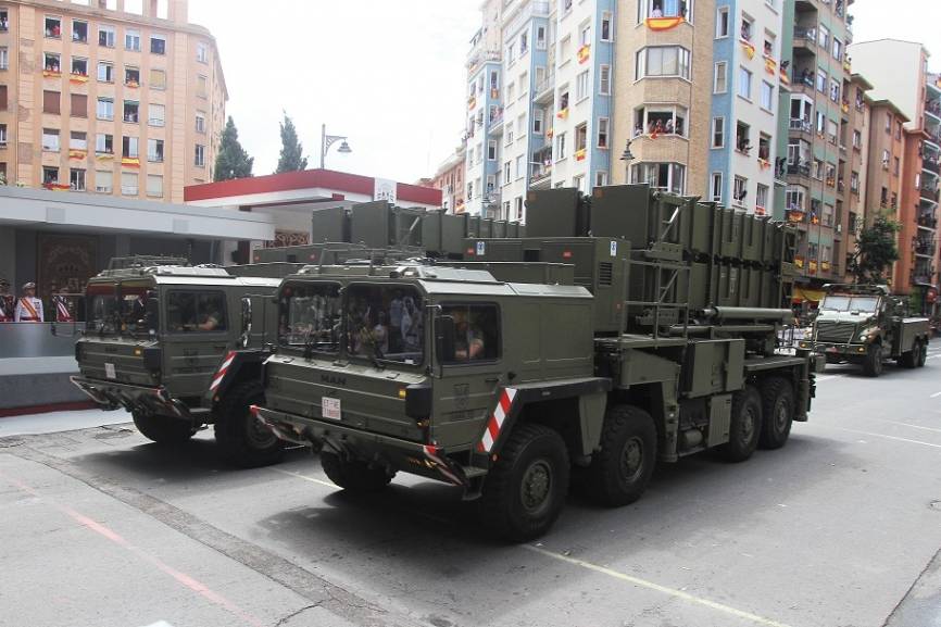 3. Dos voluminosos camiones que portan los misiles del sistema antiaéreo “Patriot”.