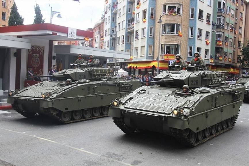 7. Dos VCI “Pizarro” de la denominada Fase 2 pasan delante de la tribuna Real.