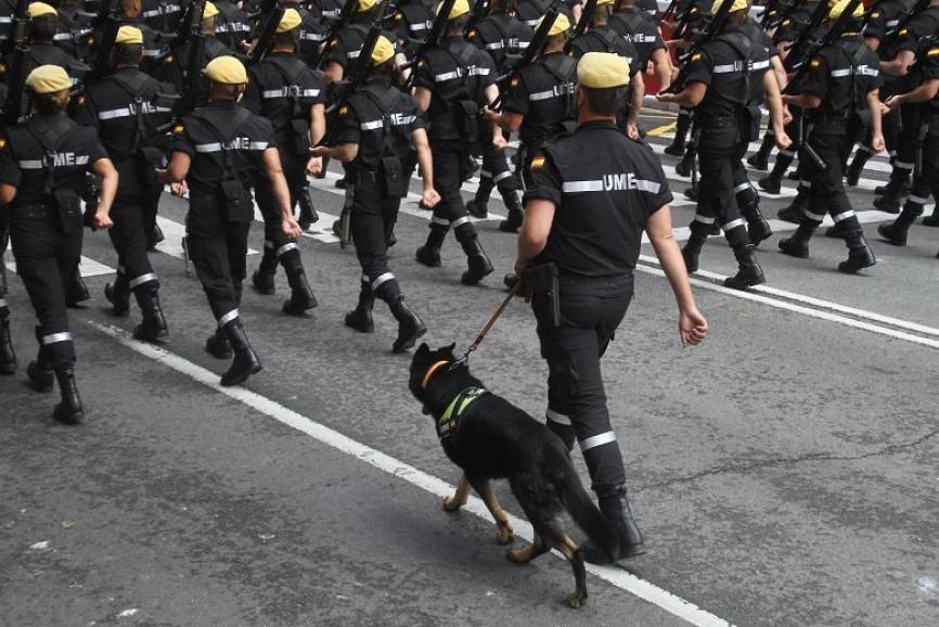 12. Además del carnero de la Legión, los caballos, pudimos ver este perro del Cuarto Batallón de Intervención en Emergencias (BIEM IV).