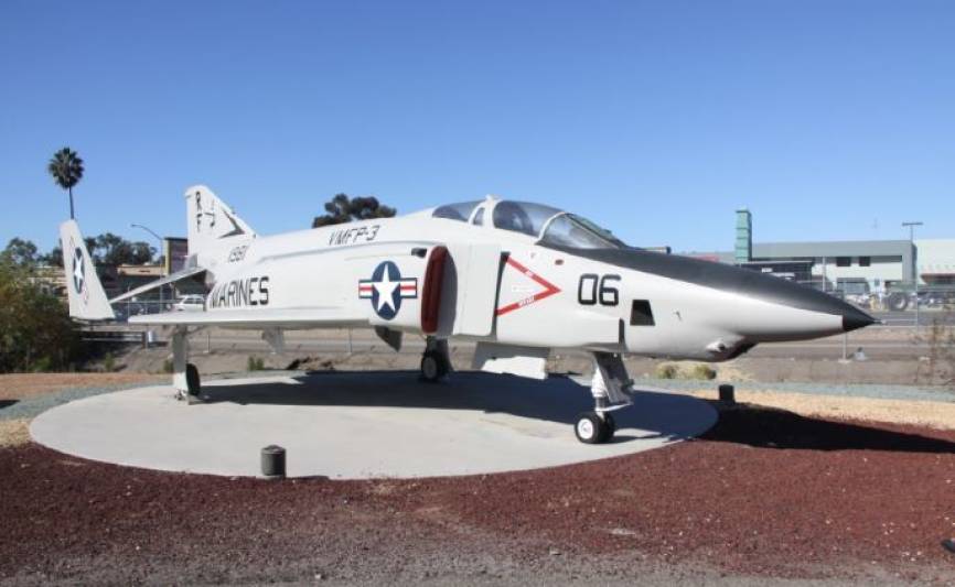 McDonnell Douglas RF-4B Phantom II de reconocimiento, operado por los Marines junto a los F-4S, también expuestos en el museo.