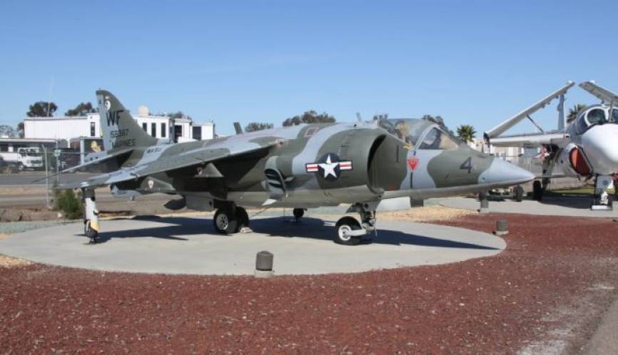 McDonnell Douglas AV-8C “Harrier” en muy buen estado, situado al lado de un A-6 "Intruder".