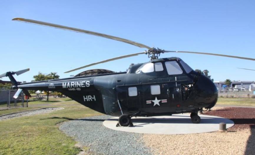 En el Museo hay una muestra de los principales helicópteros utilizados por el USMC, en primer lugar este Sikorsky HRS-3 “Chickasaw”, con el se estrenó el asalto helitransportado durante la guerra de Corea.