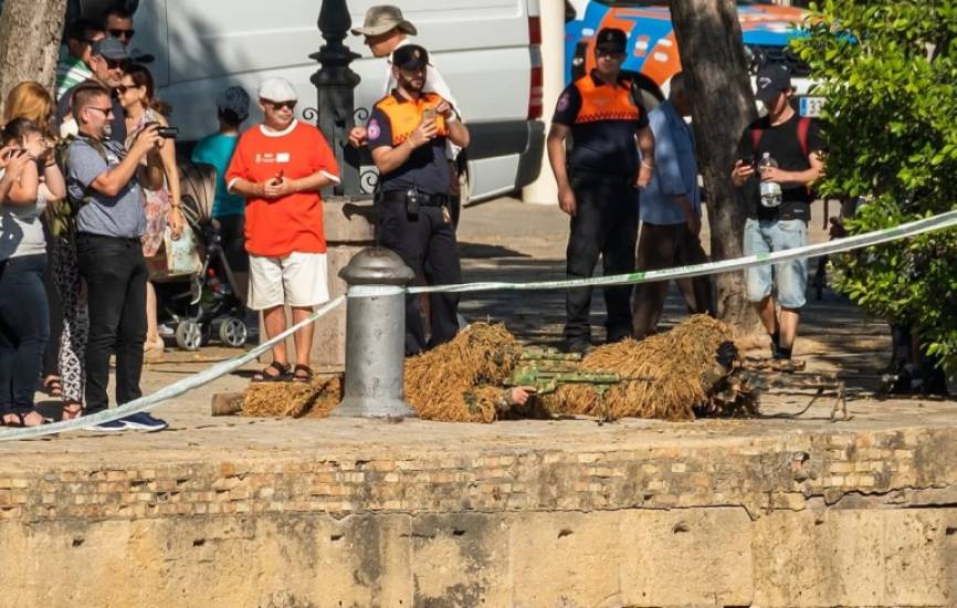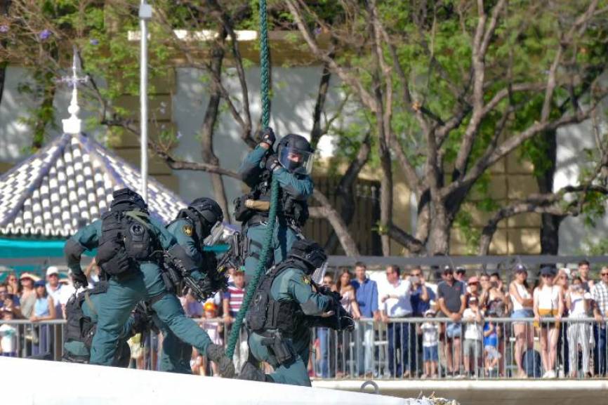 Un equipo de tiradores de élite cubriendo el “asalto”, ante la mirada expectante de algunos de los miles de espectadores.