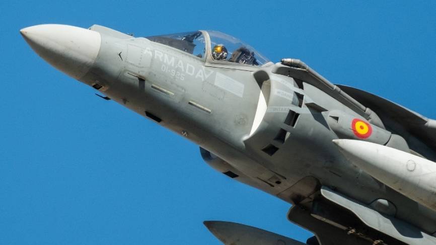 El apoyo aéreo a la operación de ala fija se materializó con un cazabombardero AV-8B II Plus de la Armada.