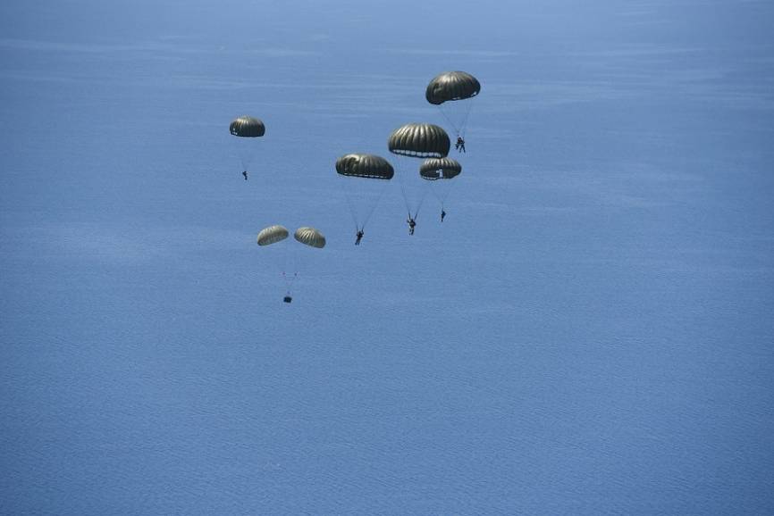 Desde los C-130J “Super Hercules” se lanzaron fuerzas paracaidistas de la División 101ª Aerotransportada y algún veterano de la batalla.