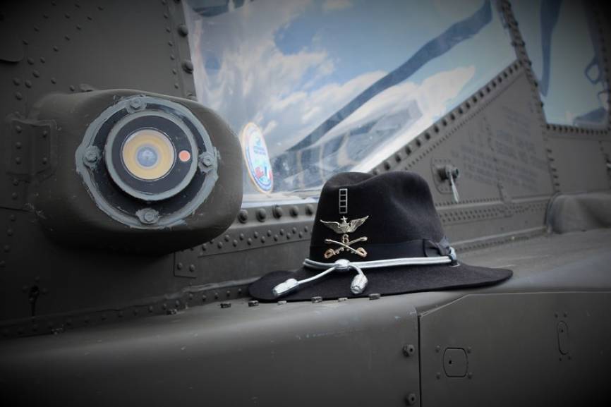El “casco” idóneo para el jinete del Sexto de Caballería que monta este Apache.