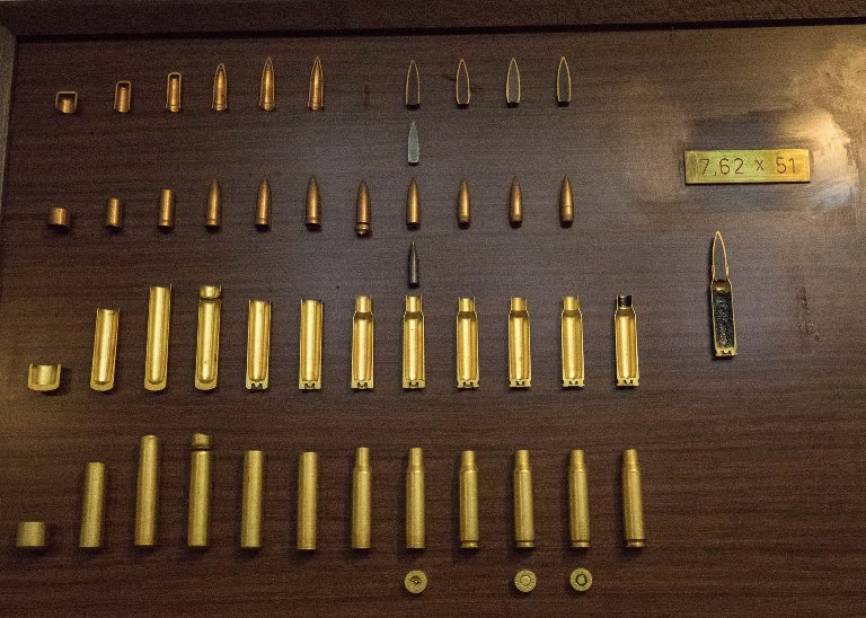 Corte transversal de los pasos de fabricación de un proyectil de 7,62