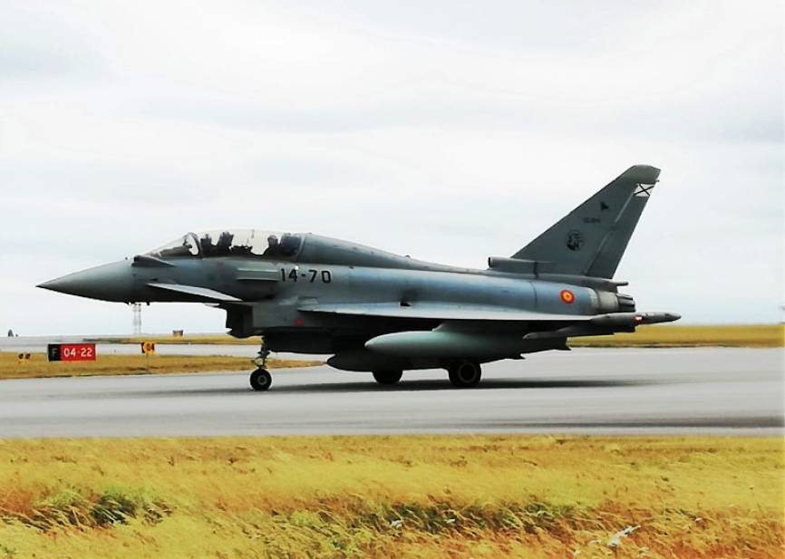 Desde la Base Aérea de Evreux despegaron dos Eurofighter biplazas del Ala 14, de los que uno se incorporó al desfile aéreo, y el otro sirvió de reserva. (foto Stephane Andris)