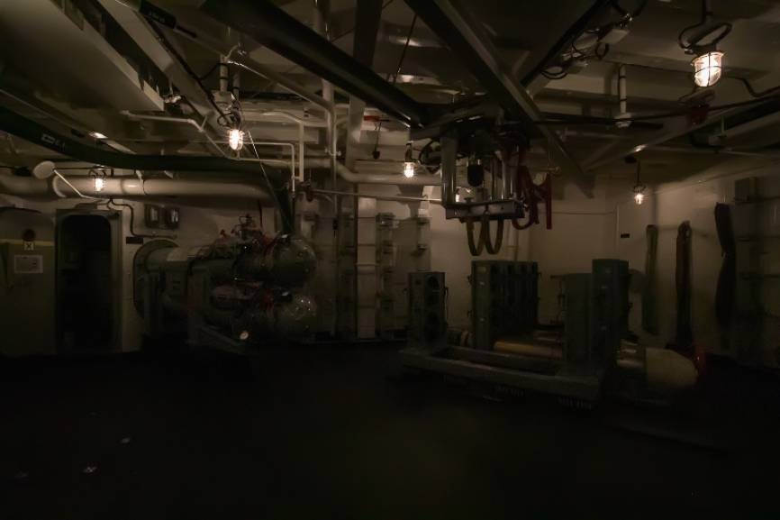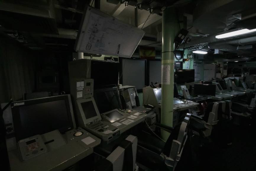 Aquí vemos parte del Centro de Información y Combate, no puede ser mostrado con sus monitores encendidos por motivos de seguridad.