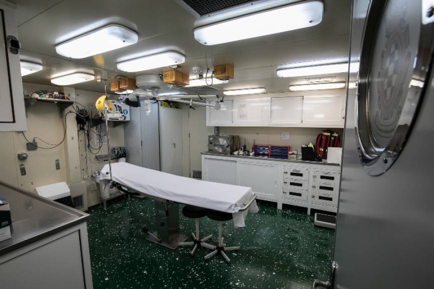 El barco cuenta con un pequeño hospital, que permite la atención primaria e intervenciones quirúrgicas de emergencia contando con todo lo necesario para ello.