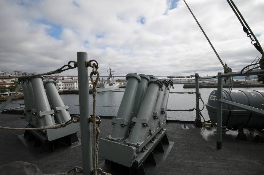 Aquí podemos observar uno de los dos lanzadores dobles de torpedos con los que cuenta el barco.