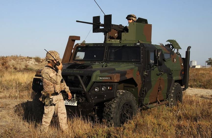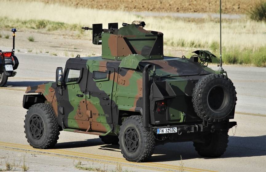 Los VAMTAC facilitan la alta movilidad del TEAR, aquí la versión dotada con una torre en la que lleva montada una ametralladora Browning M2 de 12,70 mm.