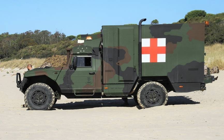 La versión ambulancia del VAMTAC ST5, que tiene la caja especialmente adaptada para las operaciones anfibias.