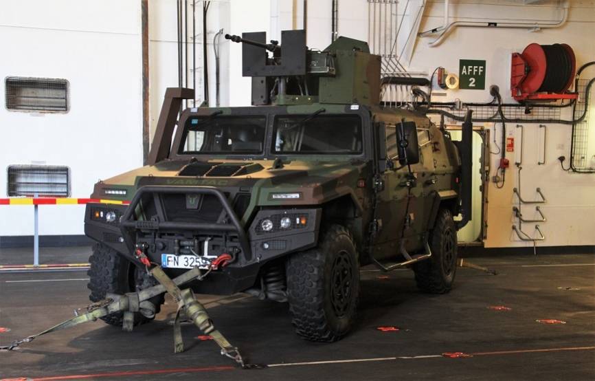 Aquí podemos ver uno armado con una M2, trincado en uno de los garajes del navío anfibio “Juan Carlos I”, durante la fase de embarque de un ejercicio anfibio.