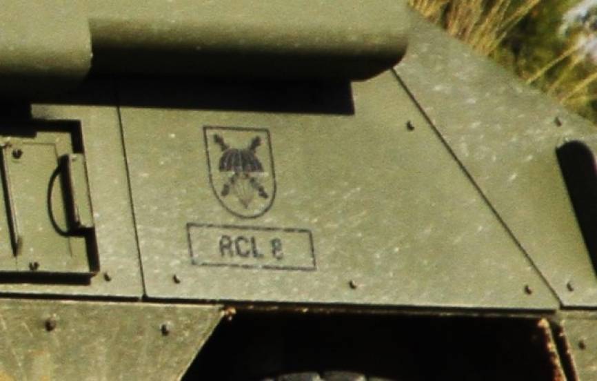 Los medios del Regimiento de Caballería "Lusitania" n.º 8 llevan la insignia de la BRIPAC, y debajo las siglas RCL 8.