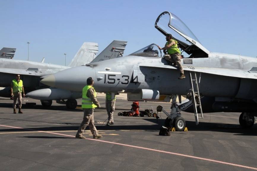 Personal de línea del Ala 15 prepara sus EF-18M para una nueva misión del TLP.