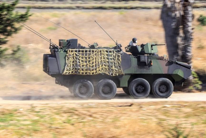 Uno de los “Piranha” IIIC de mando marchando a alta velocidad. (foto Rubén Galindo)