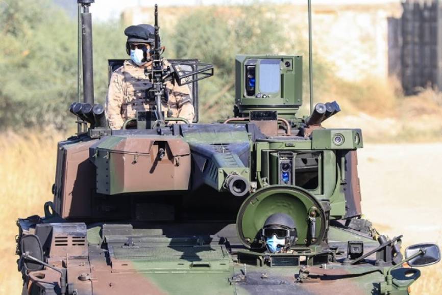 Los “Piranha” IIIC de línea están dotados de una torre tripulada armada con un lanzagranadas de 40 mm y una ametralladora de 12,70 mm. (foto José Antonio Almarza)