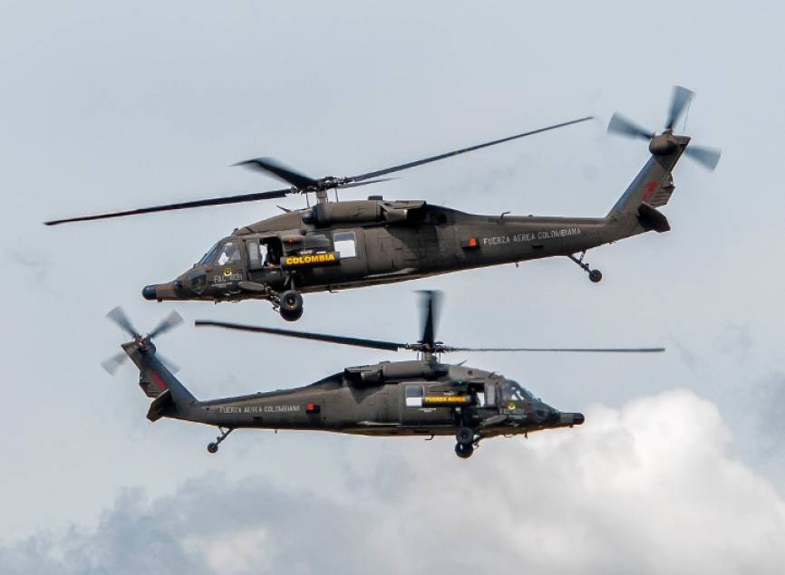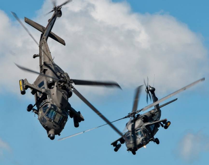 Desplazamiento de los helicópteros para formar una X en el cielo.