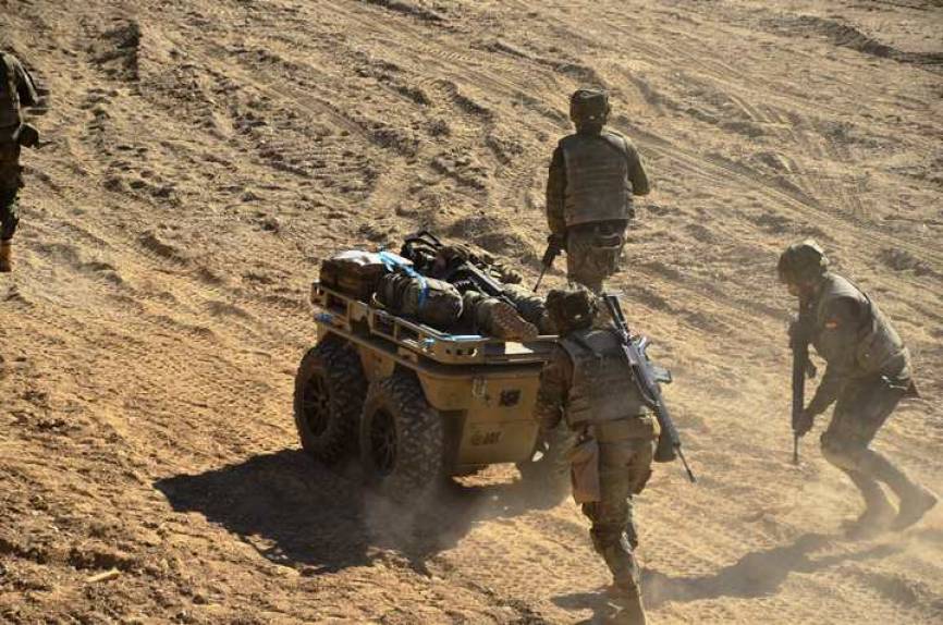Práctica de recuperación de vehículo en arena para combate en desierto.