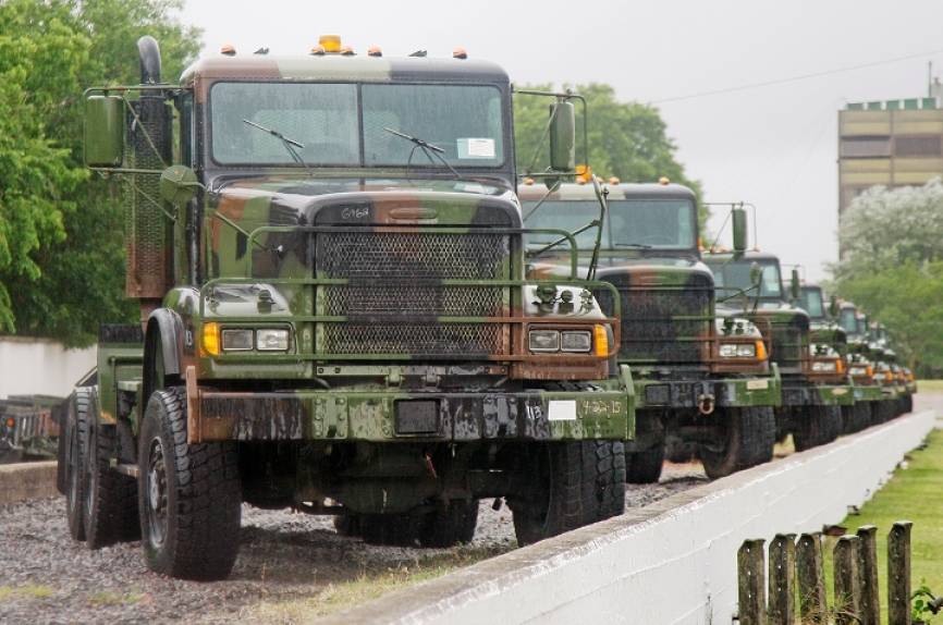 Los camiones Oshkosh M-1083A2 continúan llegando al país, lo mismo que remolques y accesorios.