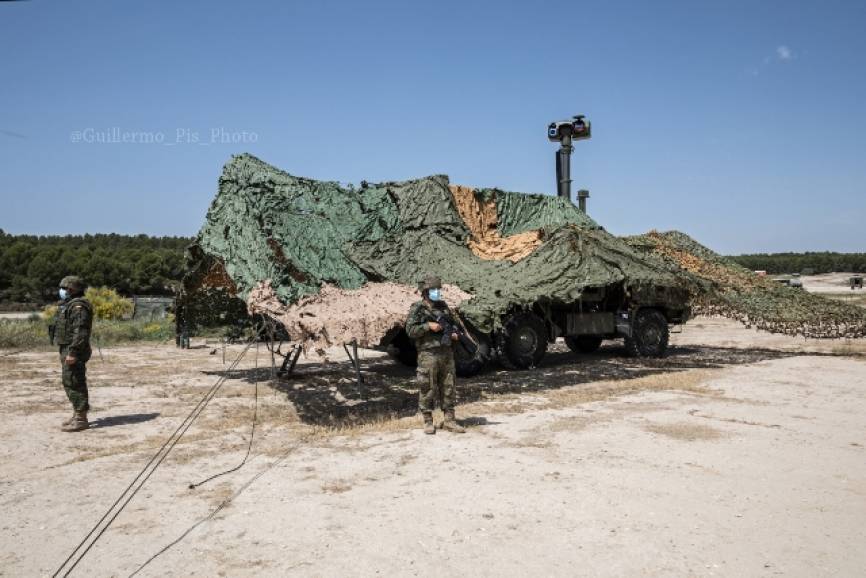 También fueron desplazados un importante número de sensores para este ejercicio. Aquí podemos ver el despliegue de un RADAR ARTHUR. Como curiosidad, comentar que esta unidad en concreto fue bautizada " VEIGAS "como homenaje al Sgto. Enrique Veigas fallecido en Bosnia-Herzegovina en acto de servicio.